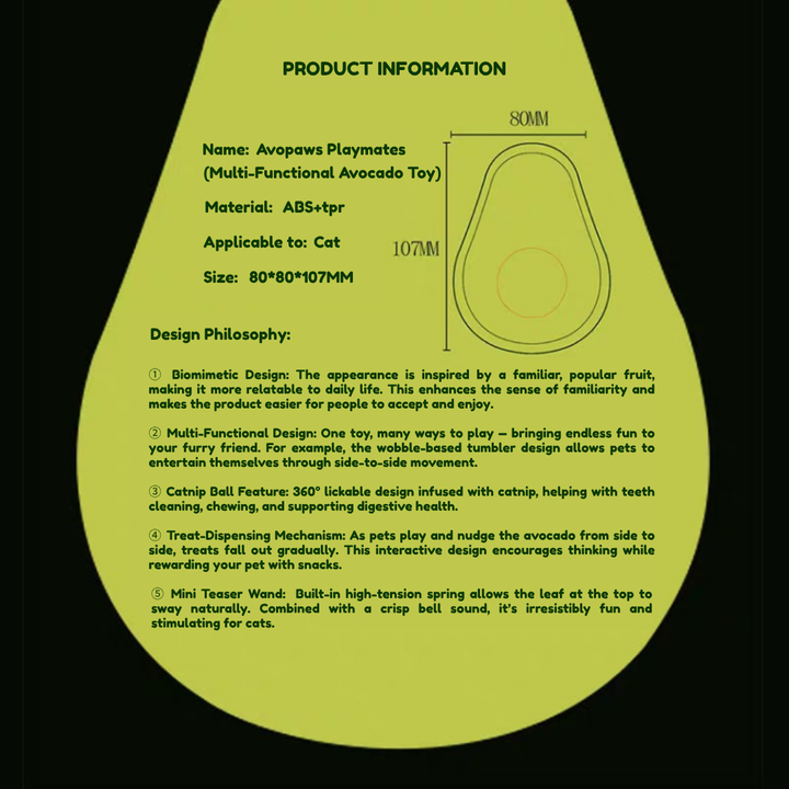 This adorable avocado isn’t just cute — it’s a multi-functional playmate designed to keep your cat engaged, active, and entertained from every angle.