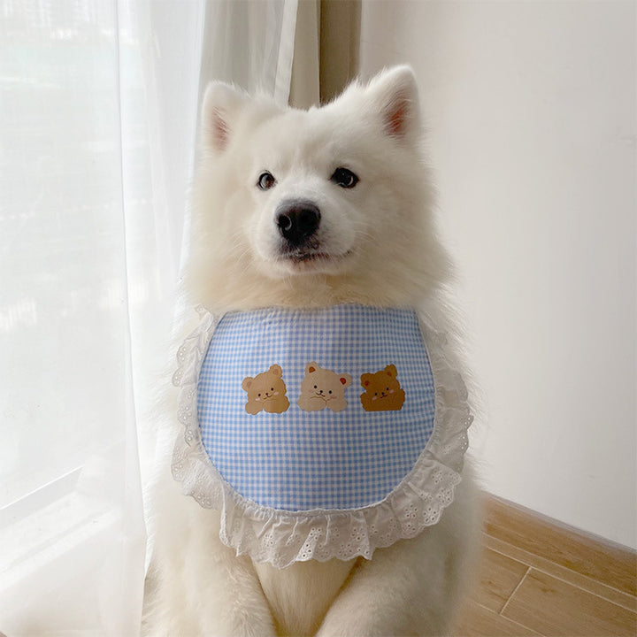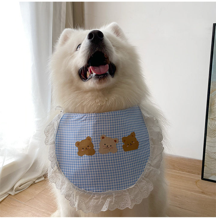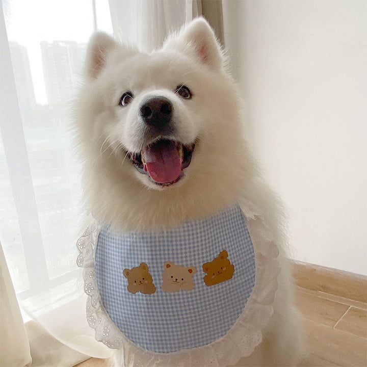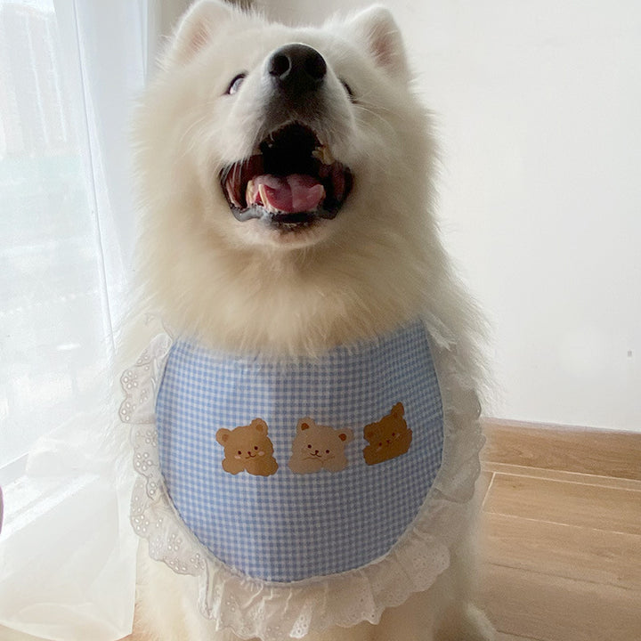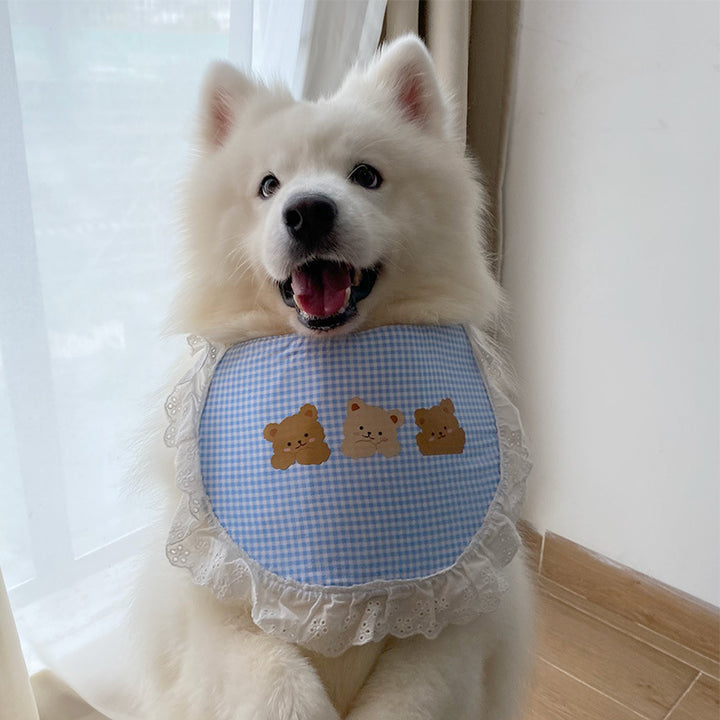 Soft, comfy, and irresistibly cuteβitβs both a drool bib and a stylish scarf, perfect for Samoyeds, Labradors, and pups big or small. Easy to put on with adjustable ties or snaps. Ideal for daily walks, photoshoots, or puppy playdates. Give your furry friend that perfect touch of cheerful blue plaid, lace detail, and irresistible bear style! β¨πΎπ§Έ