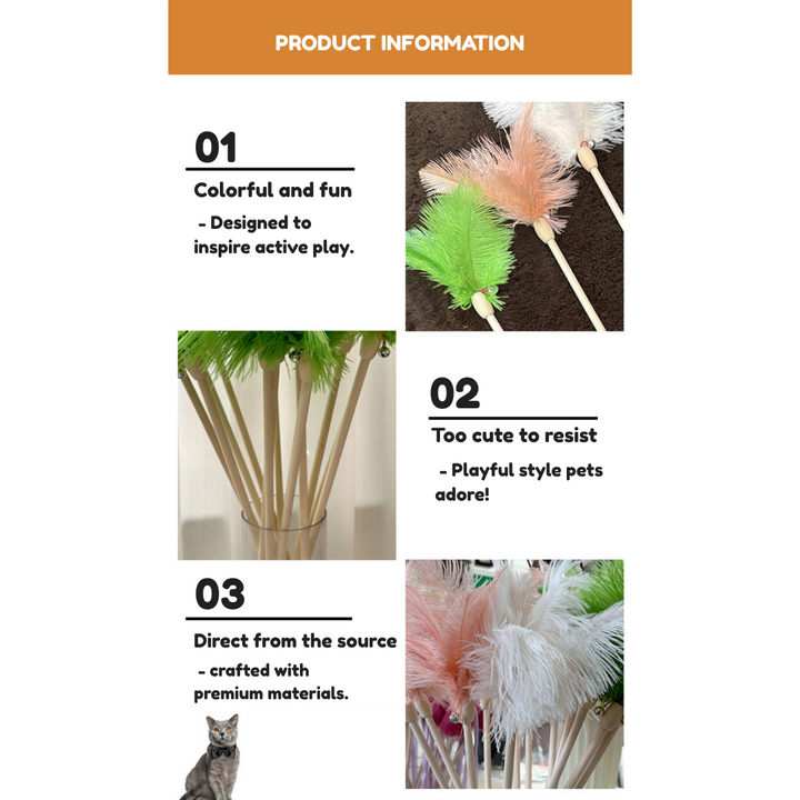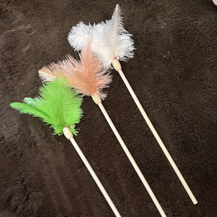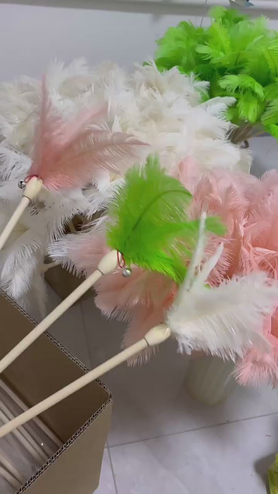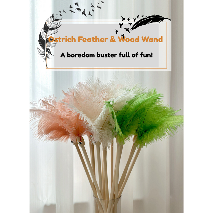 Bellwood Ostrich Feather Wand – Elegant Cat Toy with Bell & Wooden Handle