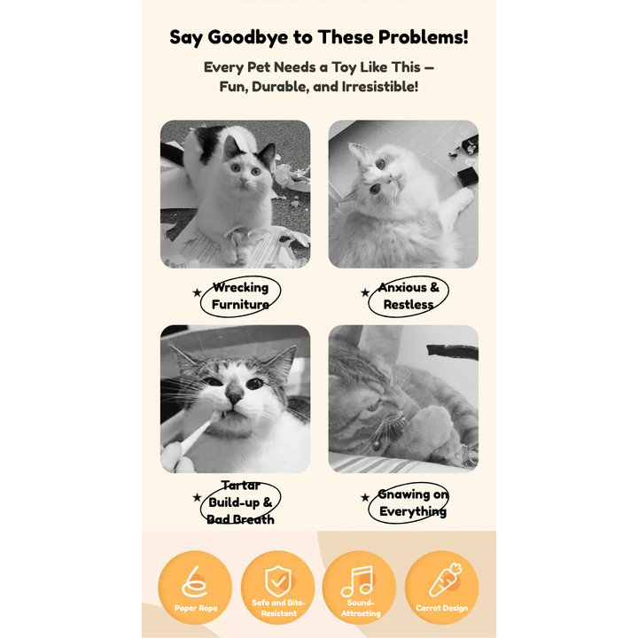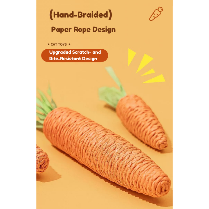 Handwoven with sturdy paper rope in an adorable carrot shape, this toy is designed to satisfy natural scratching and chewing needs while keeping your cat happily entertained. Shake it gently and it makes a soft crackle sound — instantly catching your cat’s attention for hours of self-play or bonding time.