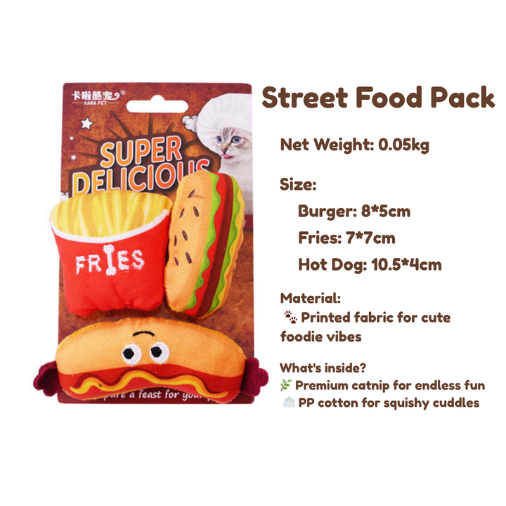 🍟 Fast Food Combo: Burger, fries, hot dog – purrfect for snack attacks!
