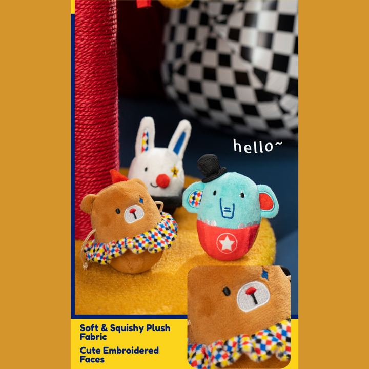 Our adorable animal performers — 🐻 Ballet Bear, 🐘 Trunky Elephant, 🐰 Juggly Bunny, and 🦄 Dreamy Unicorn — are here to bring endless fun to your kitty’s playtime!