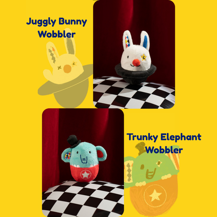 Meet the adorable stars: 🐻 Ballet Bear, 🐘 Trunky Elephant, 🐰 Juggly Bunny.