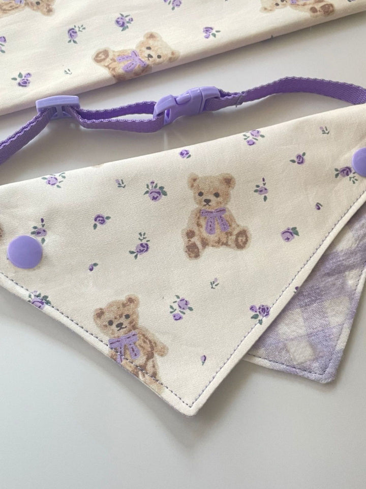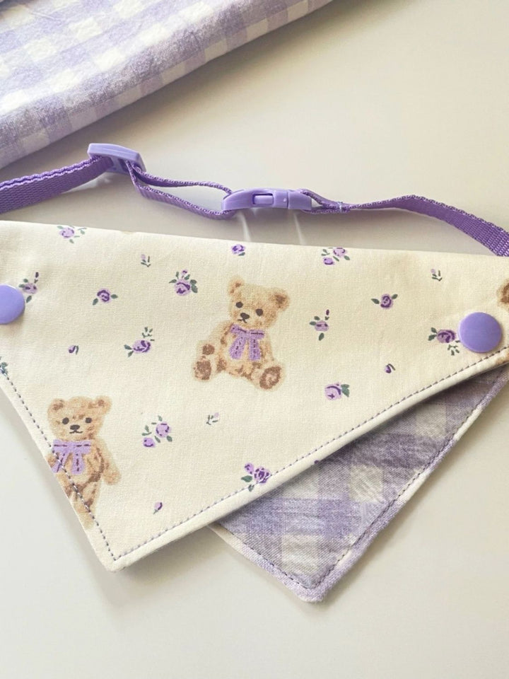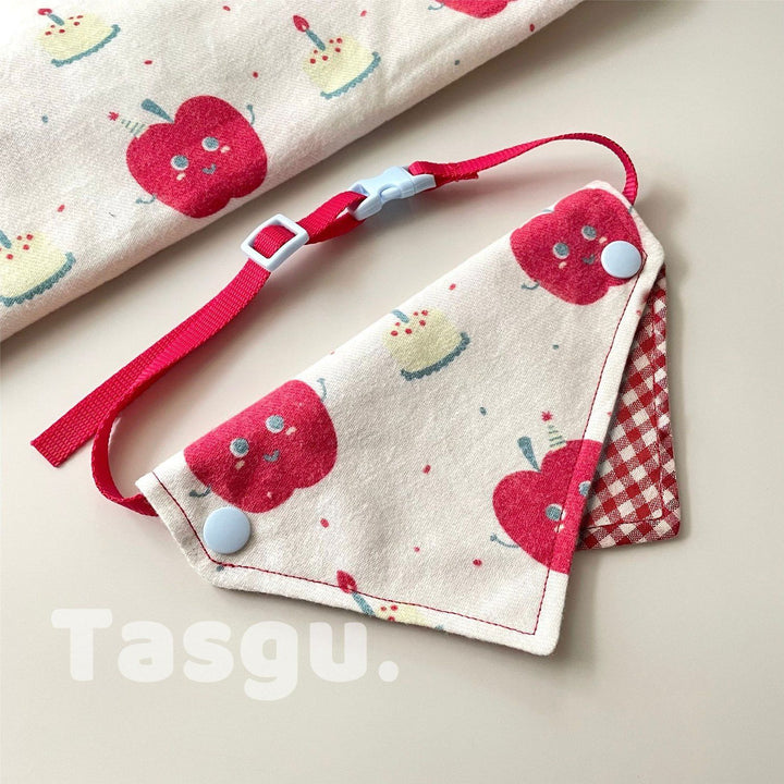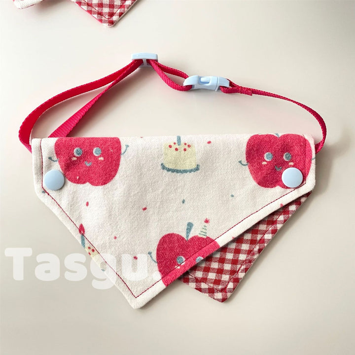 ✅ 🍎💜 Adorable Pet Bandana Collection – Purple Plaid & Red Apple Designs