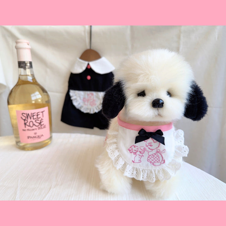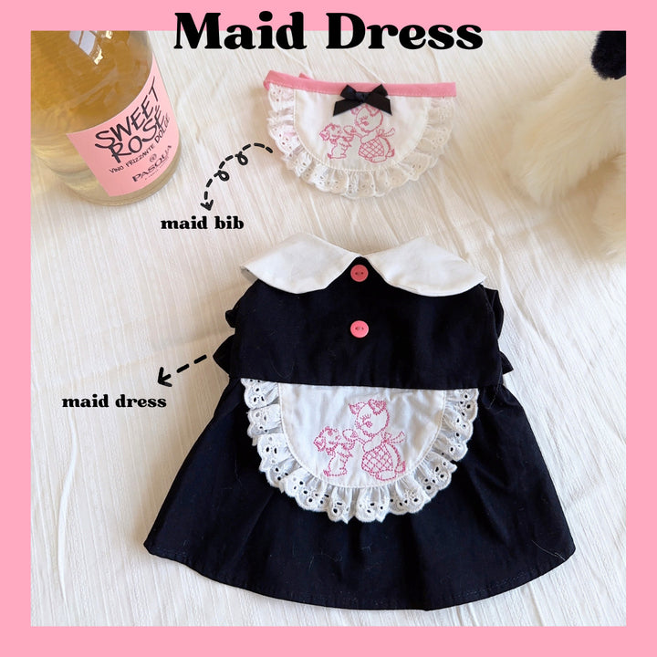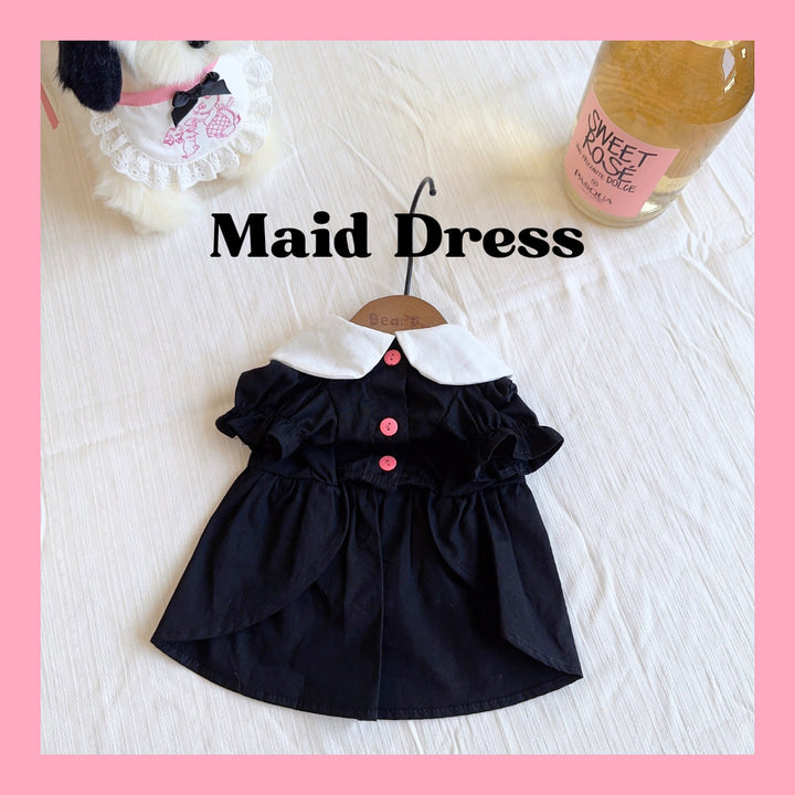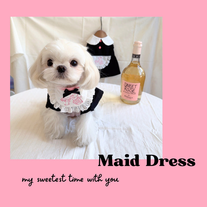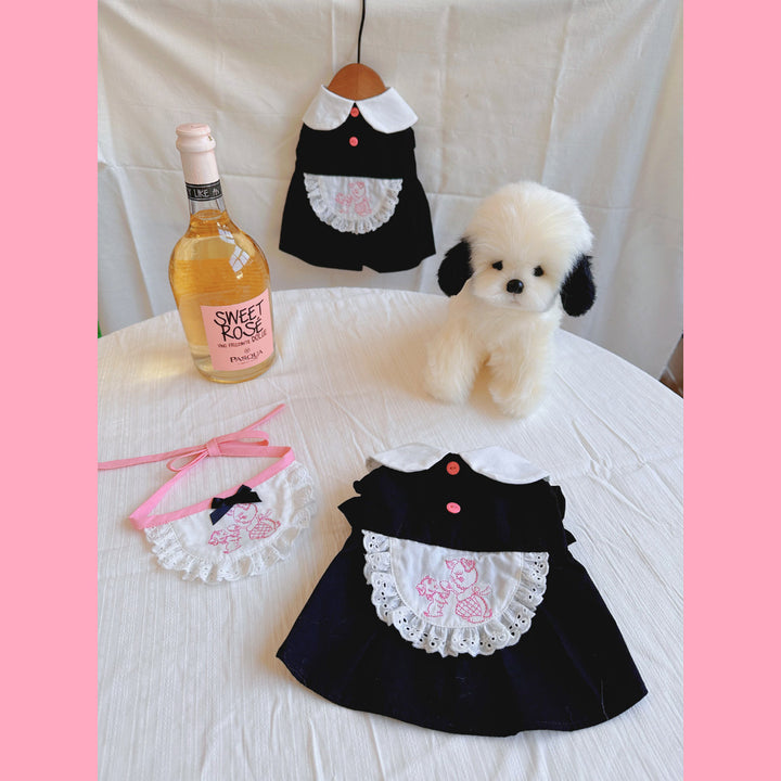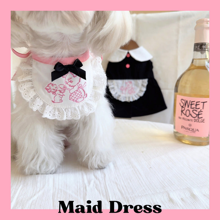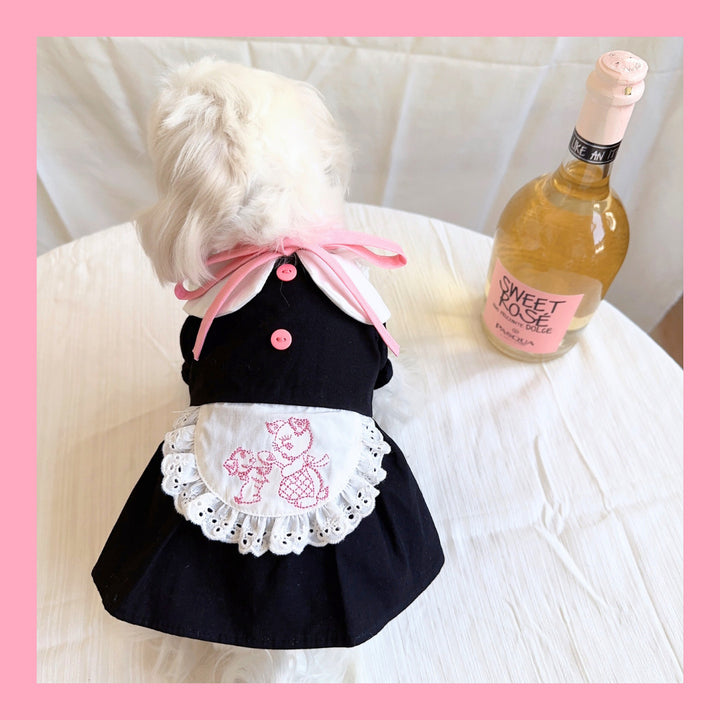 🖤✨ Adorable maid-style dog dress! 🐶 Made with soft washed cotton and delicate embroidery 🌸 for a classic apron bib look. Easy to wear, comfy, and perfect for daily walks, cute photos 📸, or special occasions 🎀. A must-have for stylish pets! 🐾❤️