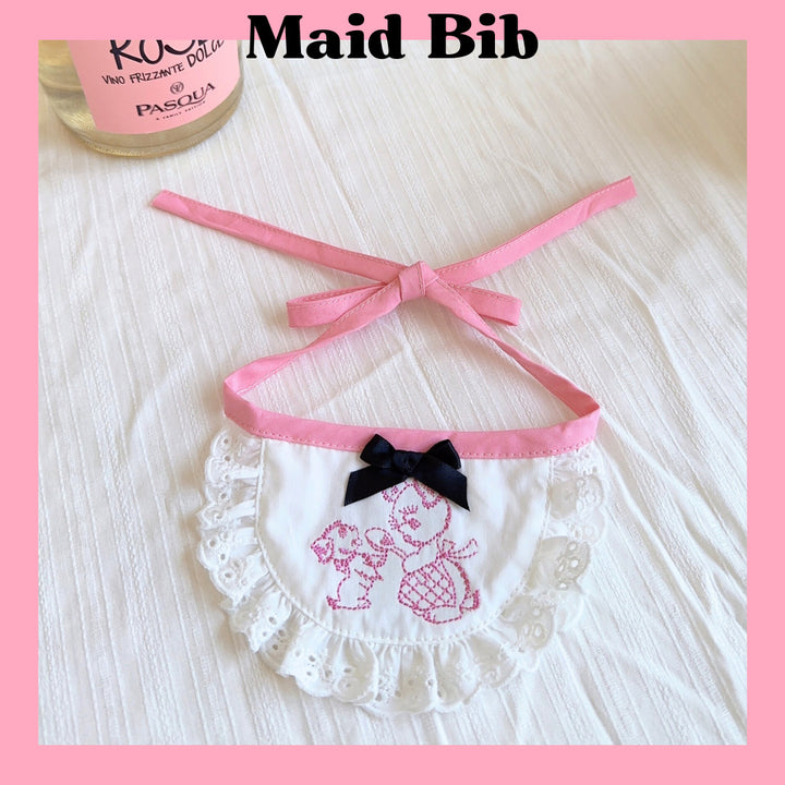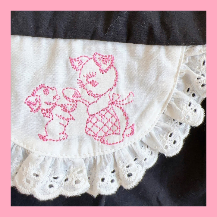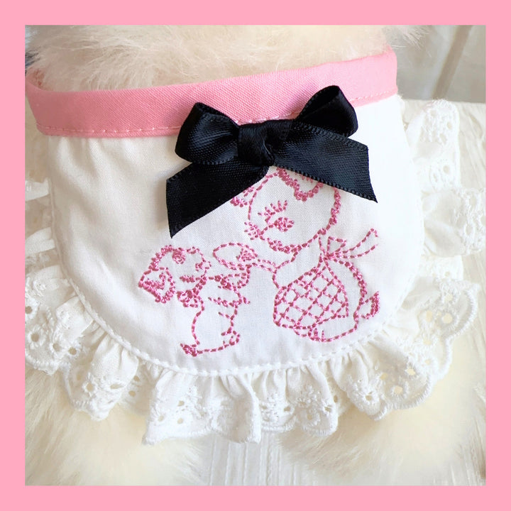 🖤 Black Maid Dress Dog Outfit – Embroidered Washed Cotton Apron Bib 🐾✨