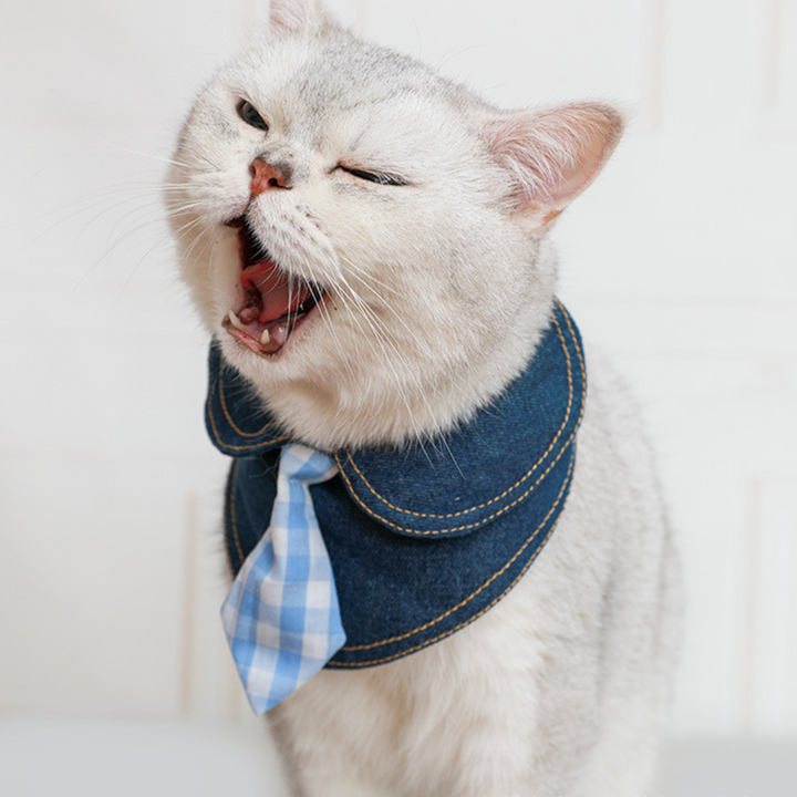 💙🐾 Denim Neck Tie Bib for Cats 🌿✨