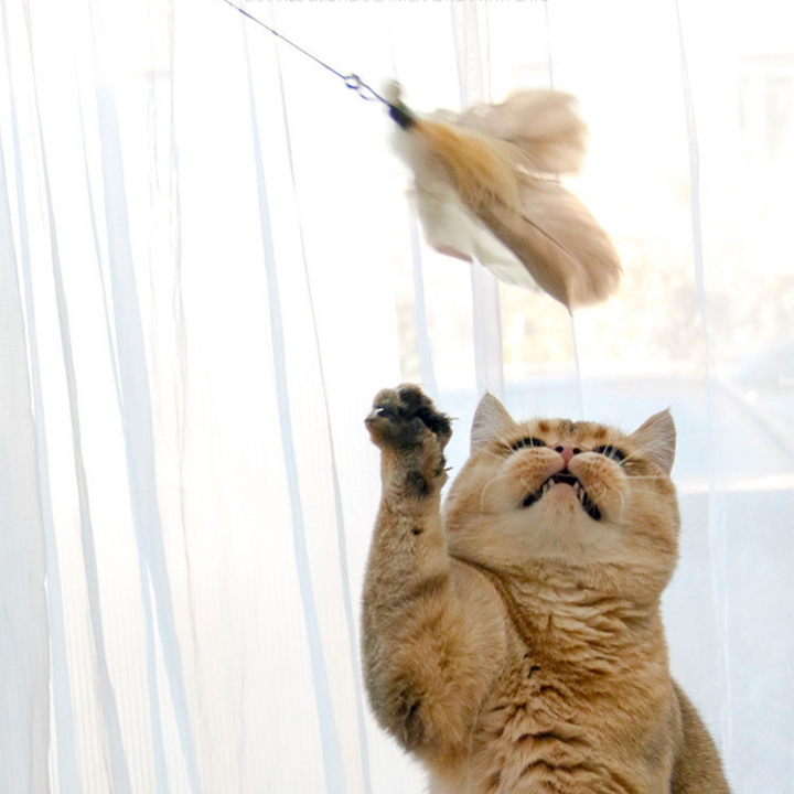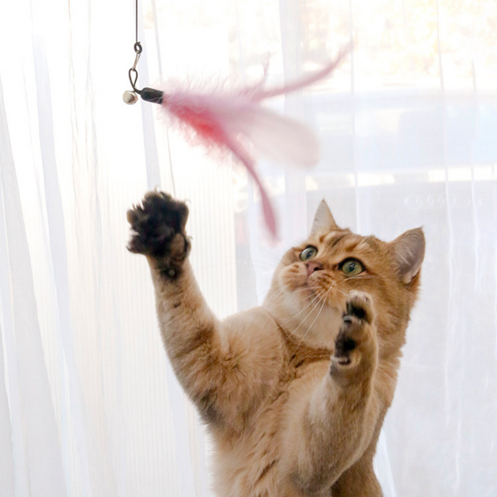 Feather + wire + bell combo keeps curious paws on their toes