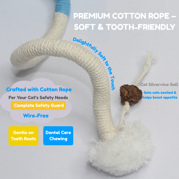 Hand-wrapped with soft cotton rope 🧵 and paired with natural silvervine gall 🌿, this adorable plush buddy excites cats, protects teeth, and stays whisper-quiet for midnight fun 🌙. Safe, wire-free, and oh-so-cute — small toy, BIG happiness! 🎉