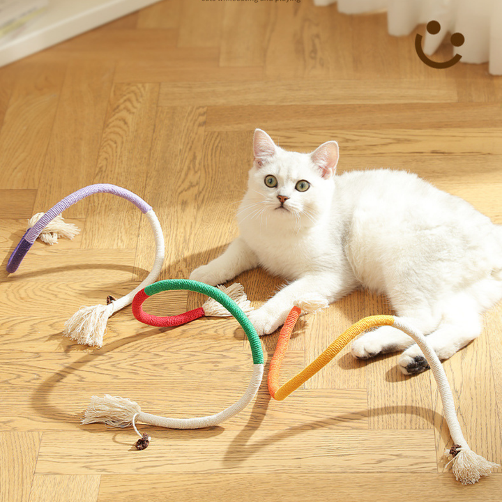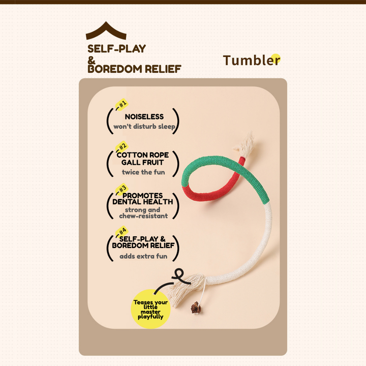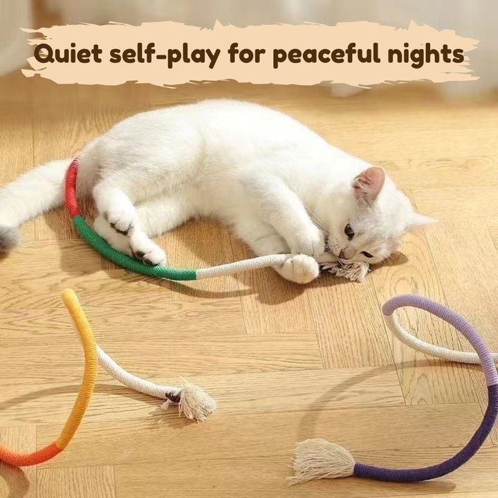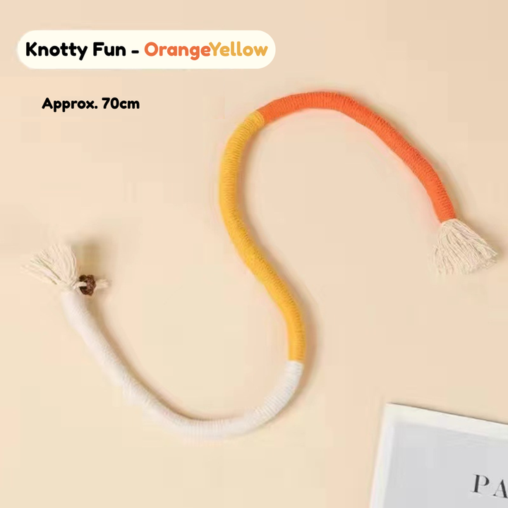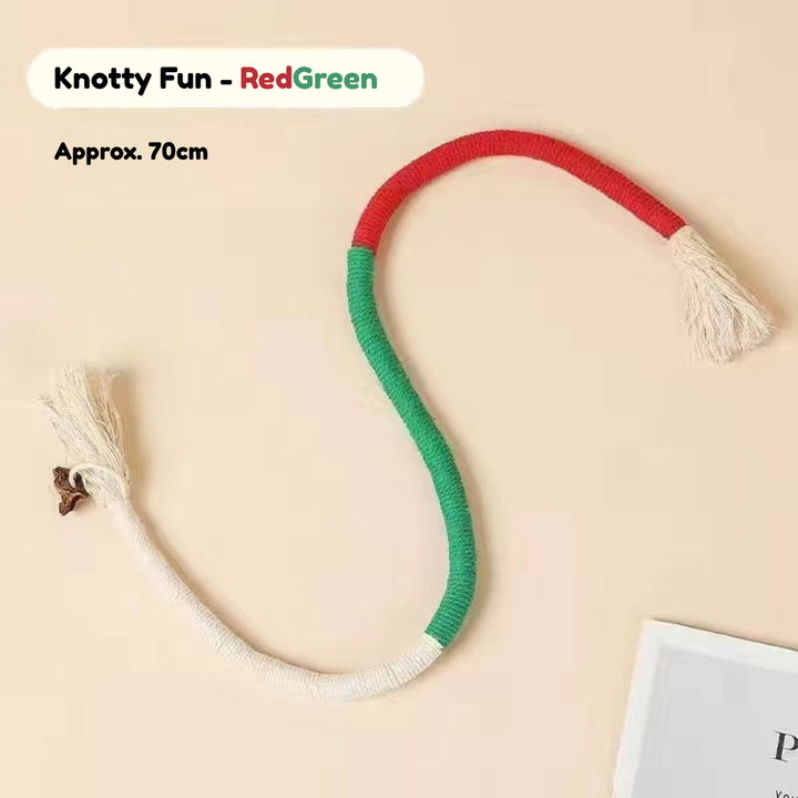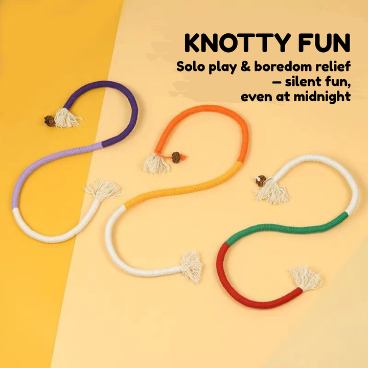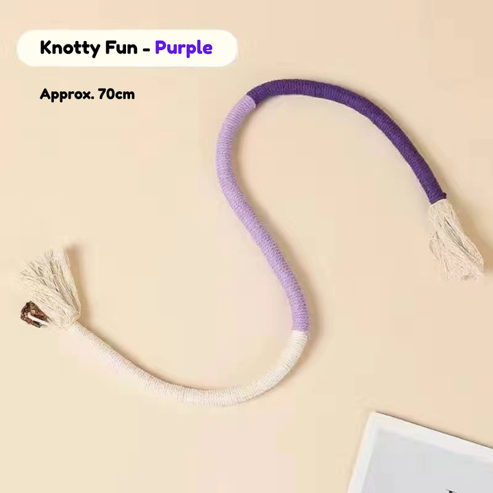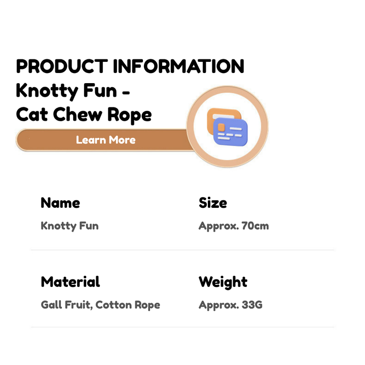 A knotted cotton-rope toy infused with natural gall fruit, designed to keep your kitty happily entertained day and night. Hand-wrapped, wire-free, and safe for every playful bite. Perfect for self-play, teething, and stress relief — all in one adorable rope!