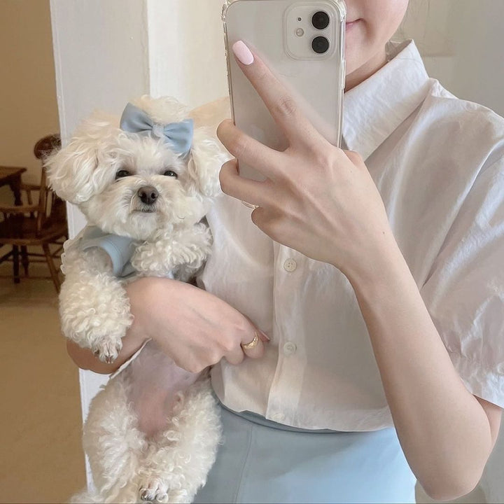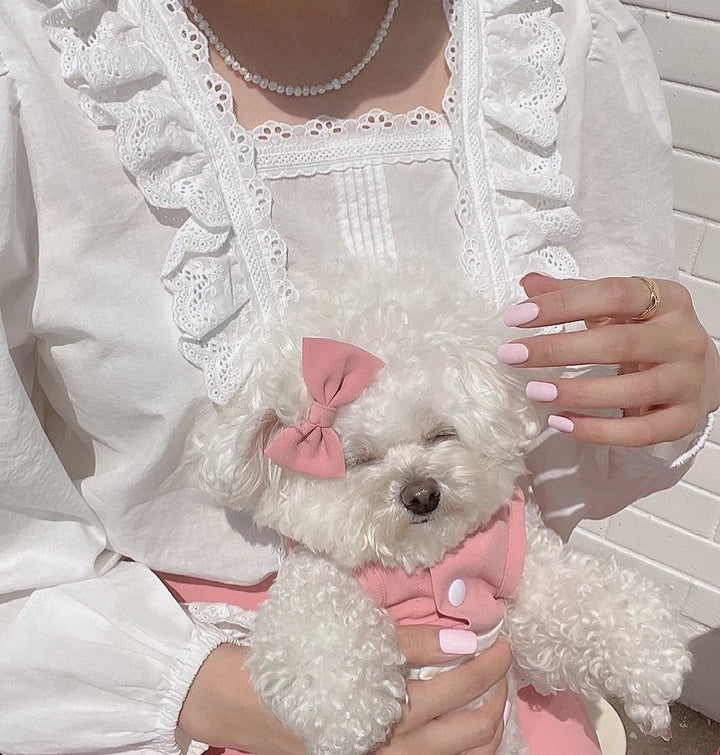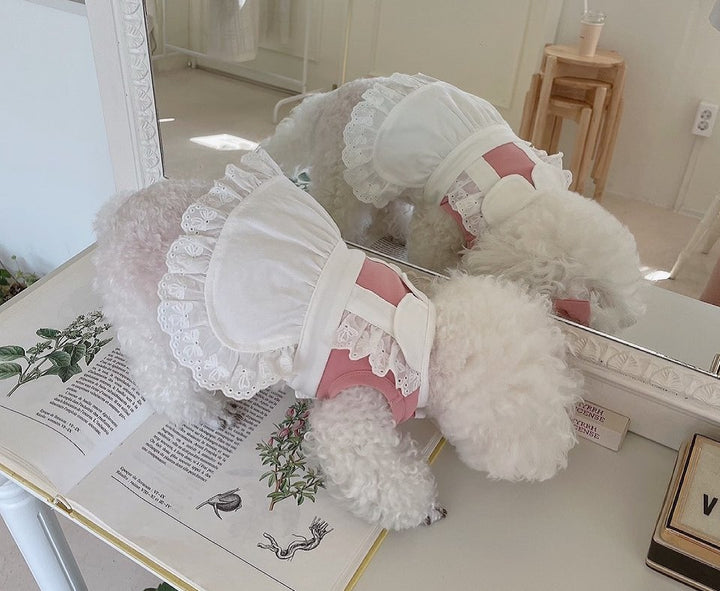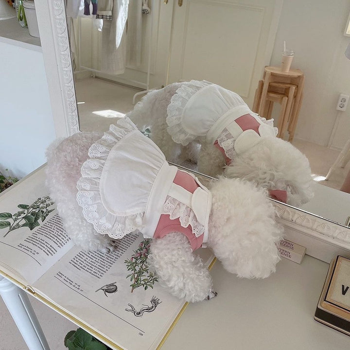 💖🩵 Dress your furry friend in the sweetest maid style! Available in adorable pink and pastel blue, this lace-trimmed dress features ruffled skirts and a cute bow for extra charm. Soft, comfy, and easy to wear—perfect for small dogs and cats like Bichon, Poodle, and kittens. Great for daily walks, parties, or irresistible photoshoots. Choose their favorite color and make them the star of every outing! 🐾✨
