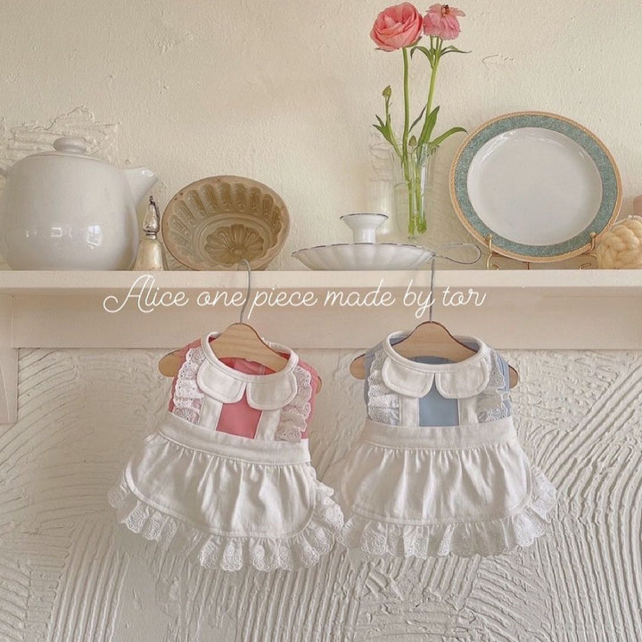 💖🩵 Pink & Pastel Blue Lace Maid Dress for Dogs & Cats 🐾 | Cute Ruffle Pet Outfit