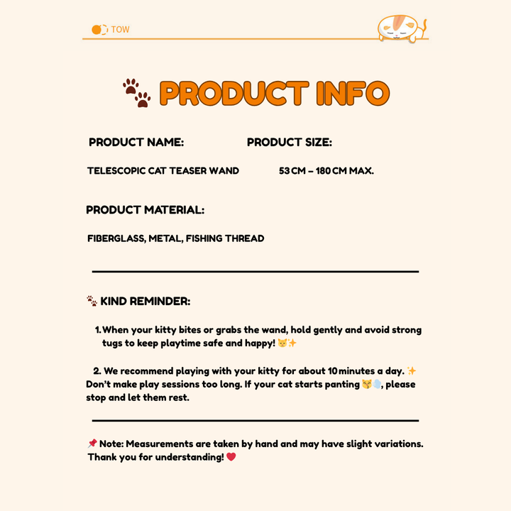 ✨🐱 Make playtime magical! This super long 1.8m telescopic wand is perfect for jumps, chases, and epic kitty hunts. With 4 easy-to-extend sections and a feather attachment connector, it’s built for big adventures and tiny apartments alike. Comes with replaceable black, white, and pink feathers to keep things fresh and fun!