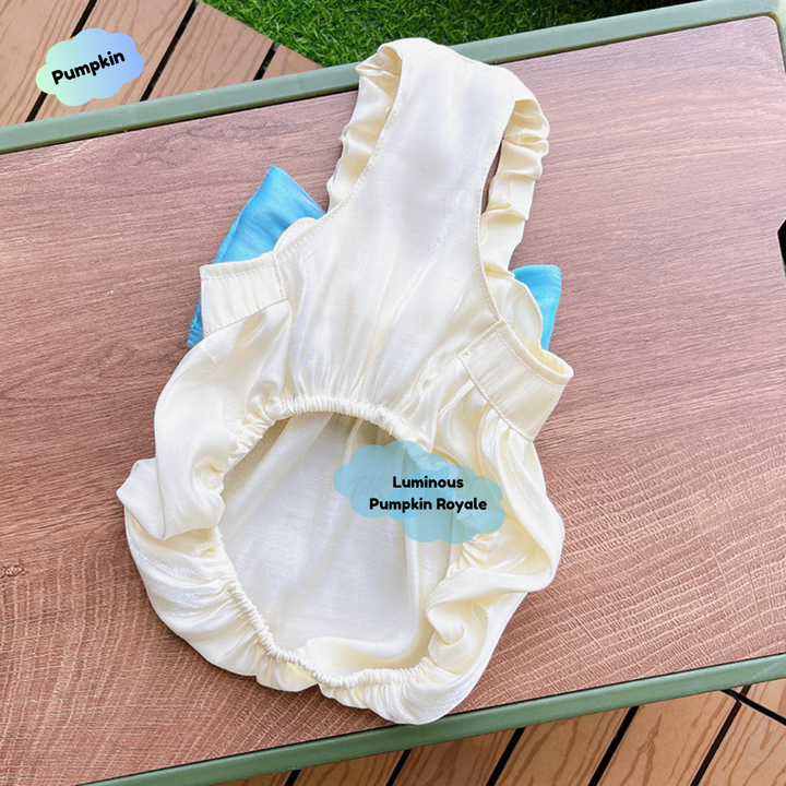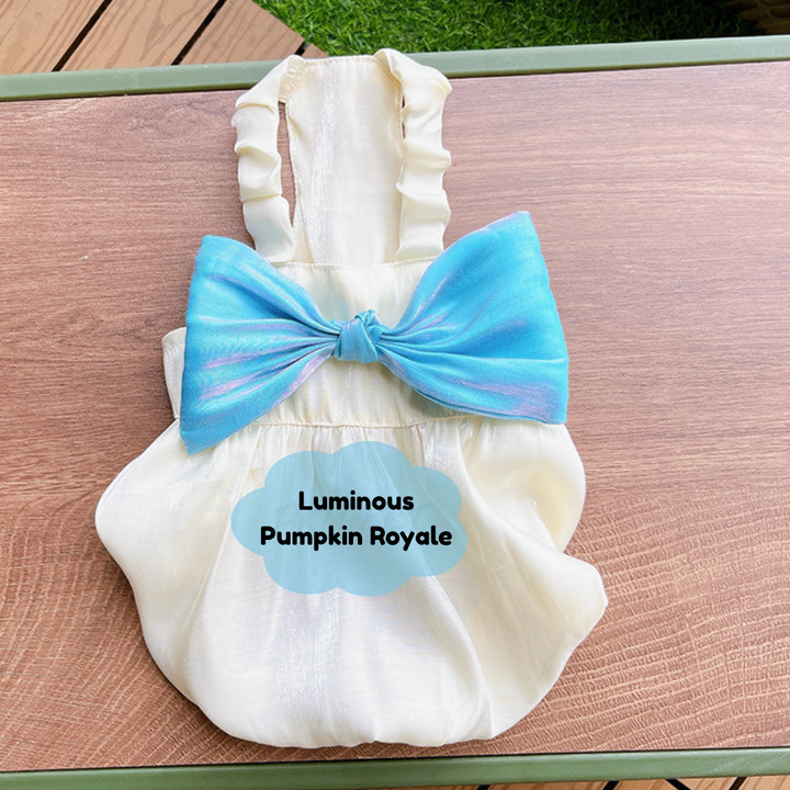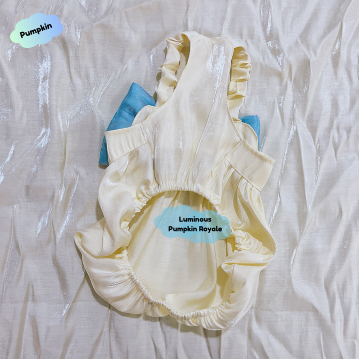 🎃🌟 Adorned with shimmering swirl patterns and a luminous satin finish, the Enchanted Pumpkin Gown is pure fairy-tale magic. Flowing layered ruffles catch the light beautifully, creating an iridescent glow with every step. A graceful bow completes this regal look, perfect for photoshoots, parties, or elegant strolls. Soft, breathable, and designed for dogs of all sizes—from tiny Maltese to majestic large breeds. Let your pet glow in royal style! 👑🐾