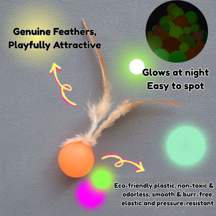 LumiPounce Toy | Glowing Feather Bounce Ball 🌙🐾