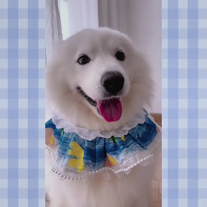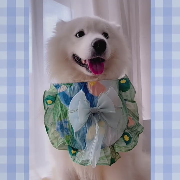Step into the charm of a French garden with this exquisite pet neck scarf, inspired by Monet’s timeless artistry. 🎨✨ Adorned with delicate floral motifs reminiscent of Giverny’s blooming pathways 🌸🌿, its rounded bib silhouette drapes gracefully around your dog’s neck for a refined, elegant look. Perfect for Golden Retrievers, Samoyeds, and stylish pups of any size, this scarf combines comfort with haute couture flair. Elevate every walk into an Impressionist masterpiece. 🇫🇷🌷🐾