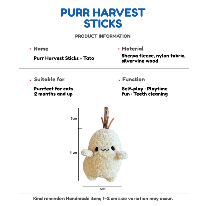 Each Purr Harvest Stick is soft, chubby, and full of playful charm — wrapped in ultra-soft sherpa fleece and filled with silvervine for healthy chewing and happy vibes. 💕
