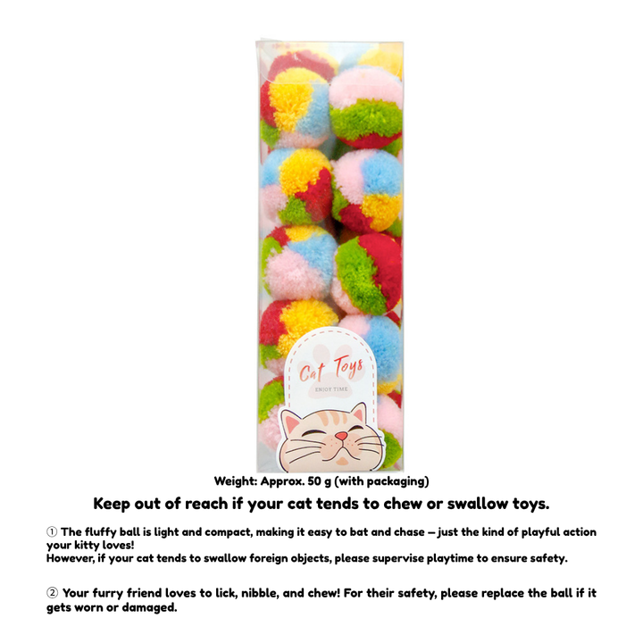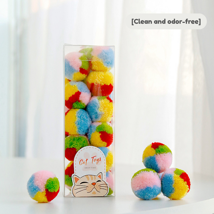This set of 20 colorful fluff balls is designed to delight your kitty with every bat, bounce, and chase. Made from washable polyester with zero fluorescers, they’re safe for licking, chewing, and tossing — all while staying clean and odor-free.