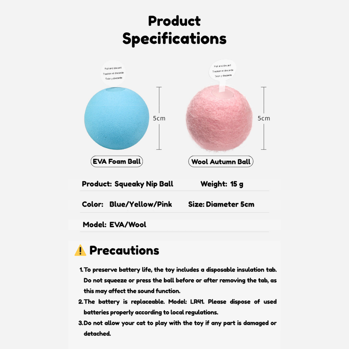 Get ready for non-stop fun! This adorable wool ball is packed with irresistible catnip and lets out a playful squeak with every bop and bite. Designed to spark your kitty’s natural hunting instincts, it's the ultimate toy for solo playtime!