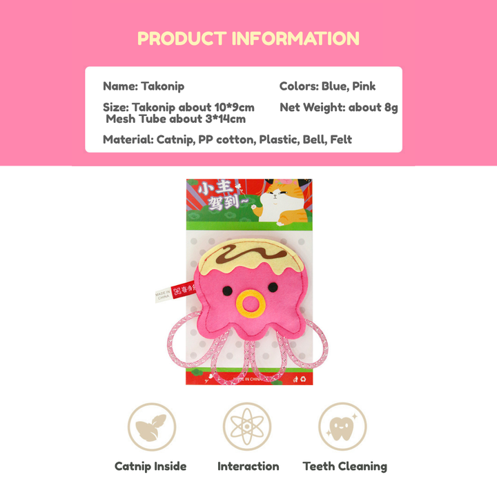 Let your kitty dive into playtime with Takonip — a super cute, original cartoon-style felt toy that's packed with irresistible fun and calming vibes! 💖