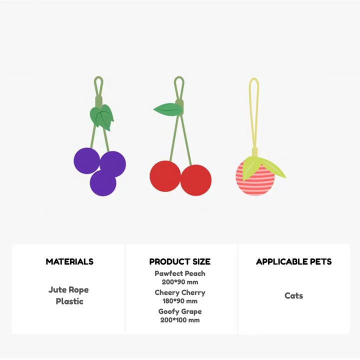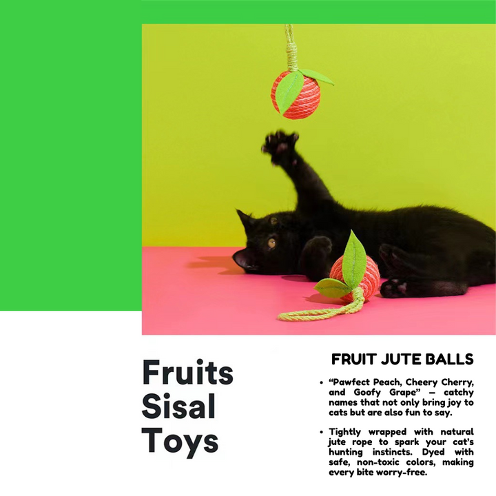 Catchy names, fruity designs, and tough jute rope wrapping make these toys irresistible for curious kitties. Toss, fetch, scratch, and bite — they’ll keep your cat active, happy, and stress-free.