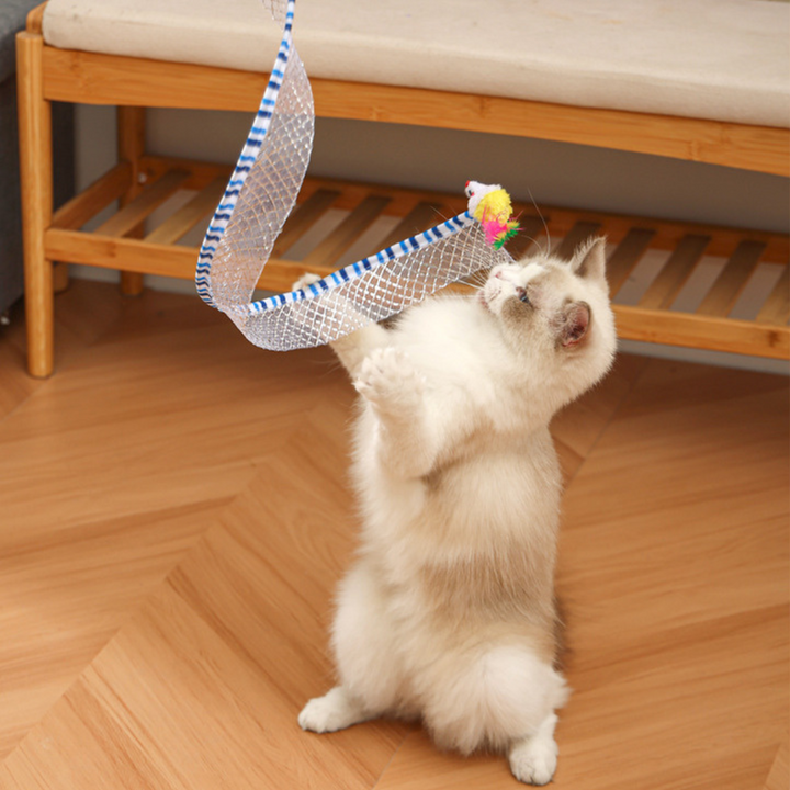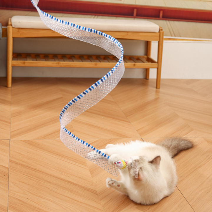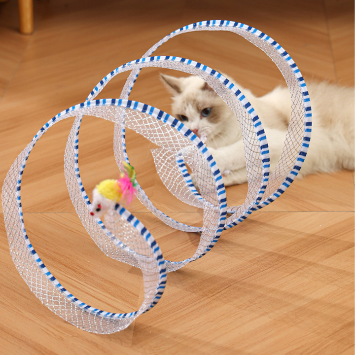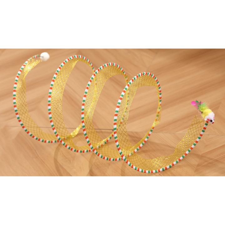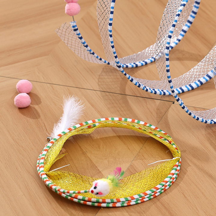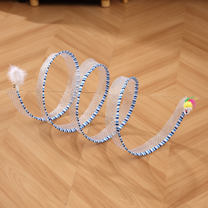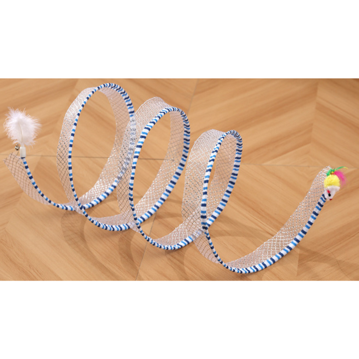 This S-shaped, foldable cat tunnel comes with a feather teaser for extra excitement. The elastic mesh and steel wire frame keep it bouncy and durable, while the bright Yellow or Blue design adds a pop of color to playtime. Perfect for running, hiding, pouncing, and chasing — all in one toy!