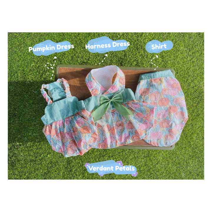 Make your pup the star of every season with our Elegant Green Floral Pumpkin Dress. Crafted in beautifully printed green floral fabric, this dress features a signature pumpkin-shaped silhouette that creates playful, voluminous curves. A luxurious satin ribbon bow adds the perfect finishing touch of refined elegance. Ideal for photoshoots, celebrations, or simply making everyday walks extra special.