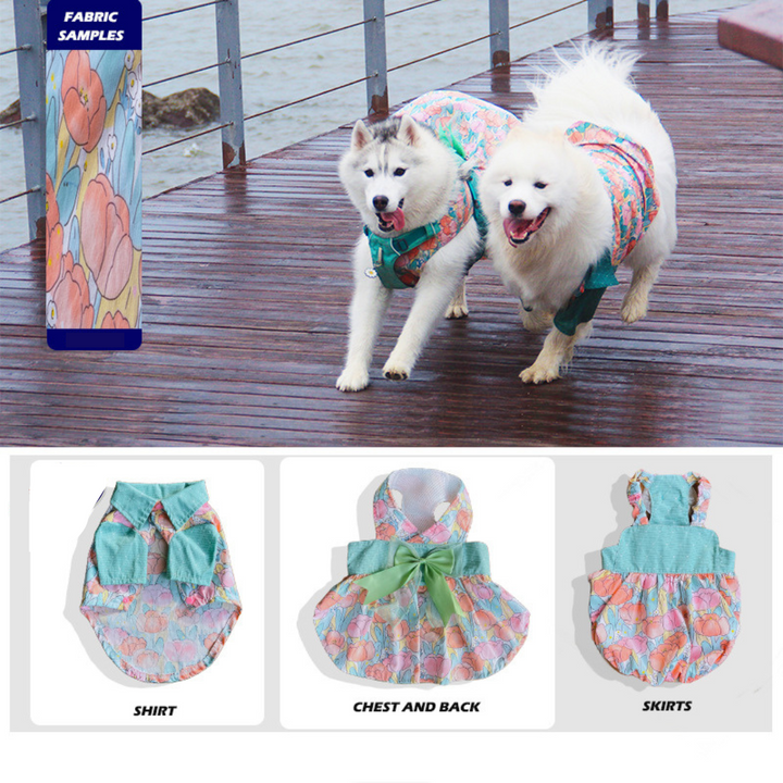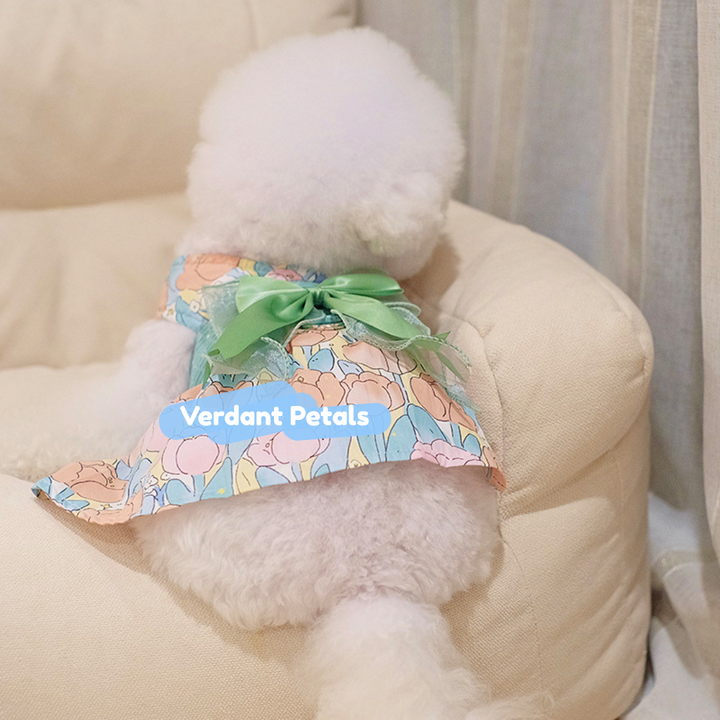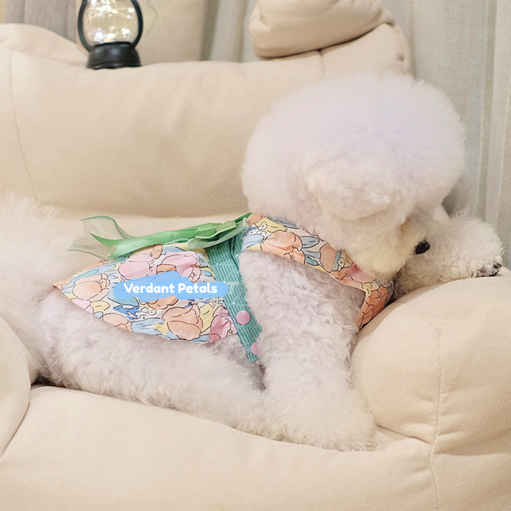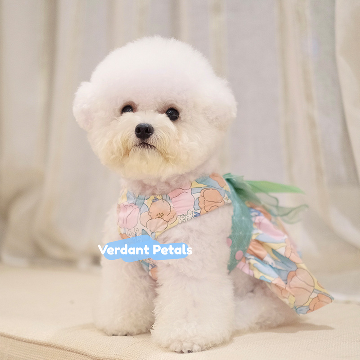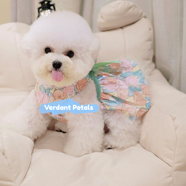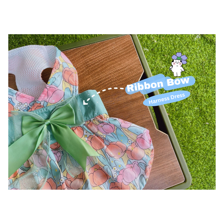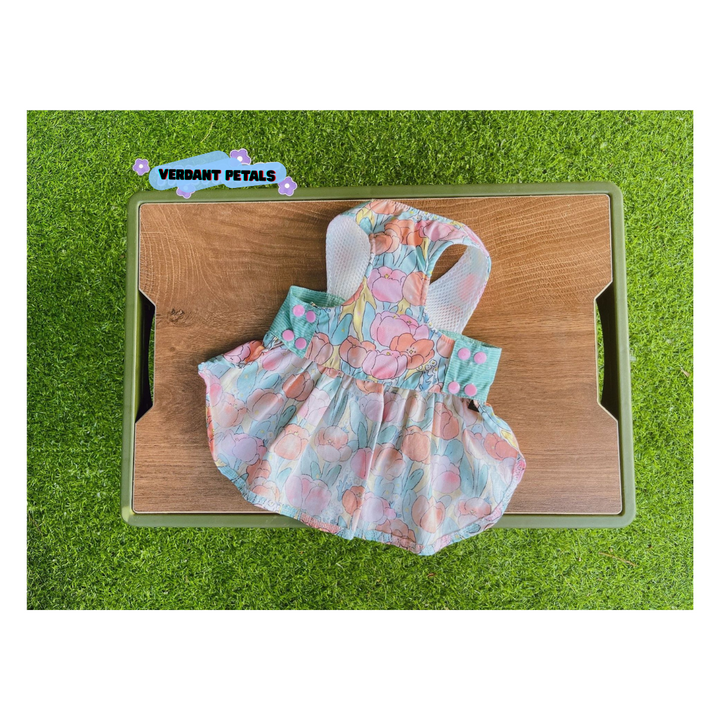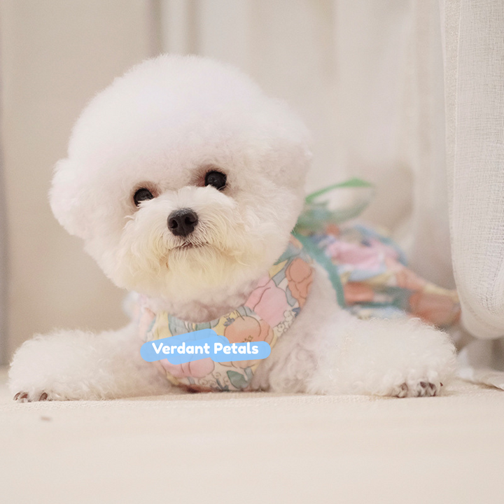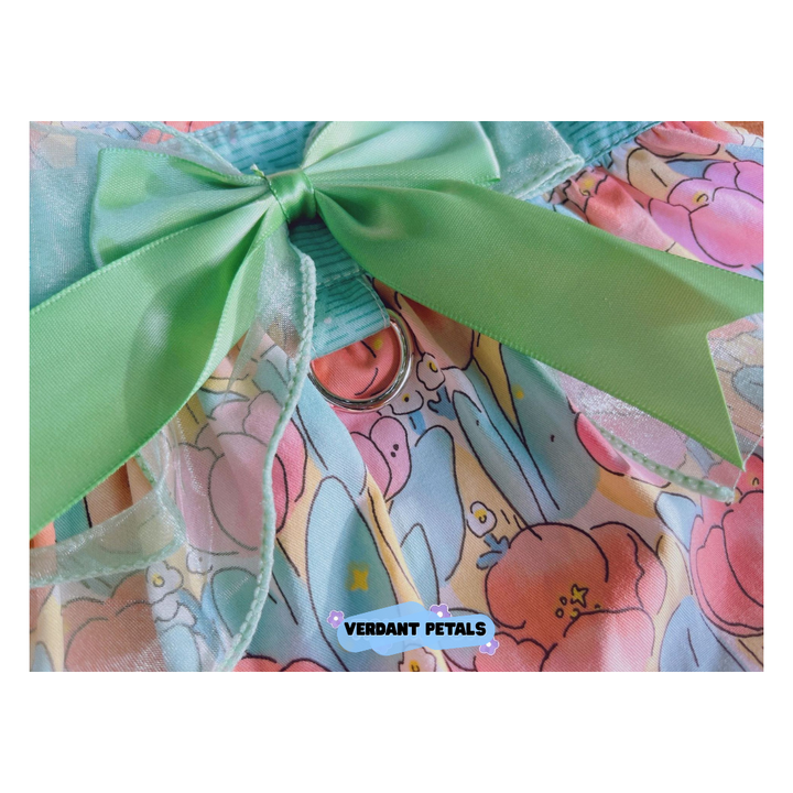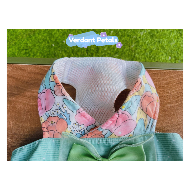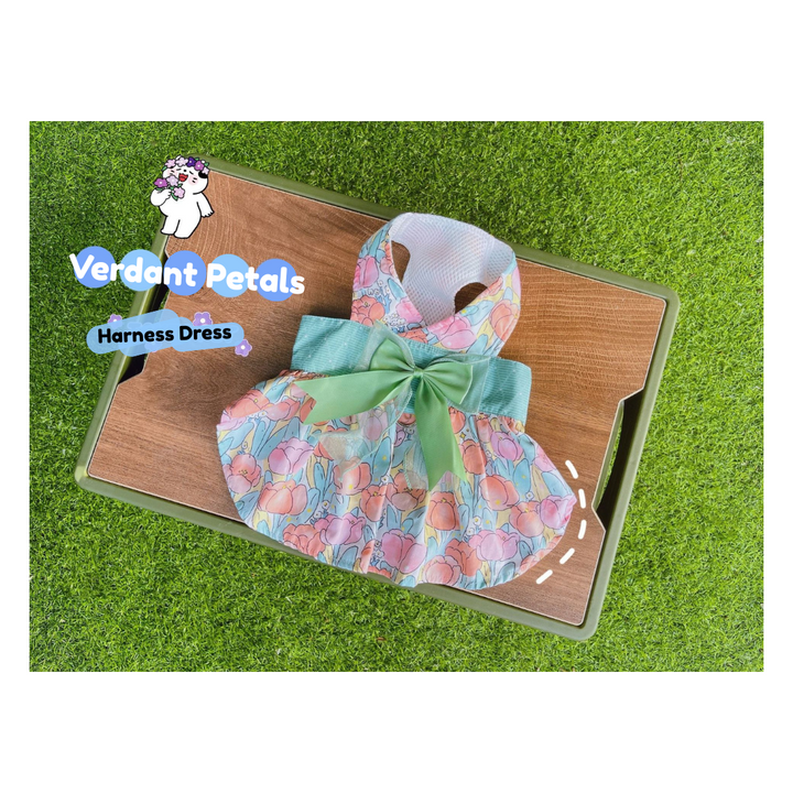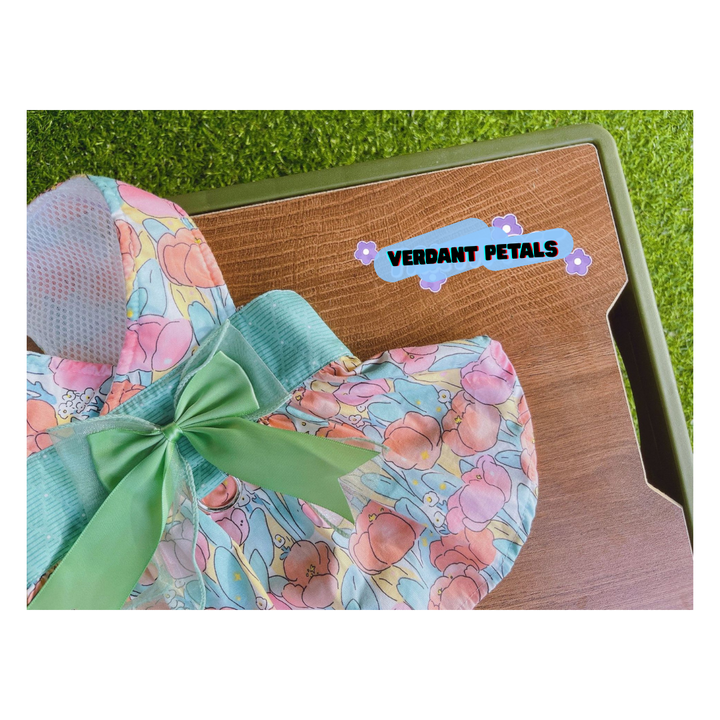 Elevate daily outings with our Elegant Green Floral Harness Dress, designed for beauty and function in one piece. This stylish harness dress is made from printed green floral fabric, combining secure harness construction with a graceful skirt that moves beautifully. Finished with soft satin ribbon details for an unmistakably sophisticated look.