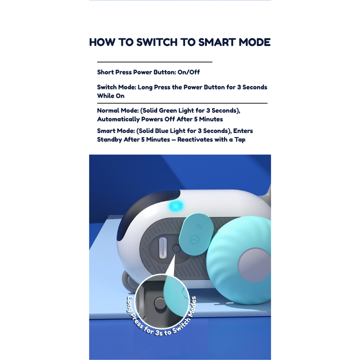 🐾 Auto Mode: Runs for 5 minutes, enters standby, and reactivates with a tap.